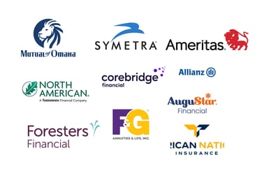 Allianz · Ameritas · ANICO · Augustar · Corebridge · F&G · Foresters · Mutual of Omaha · North American · Symetra